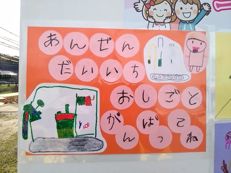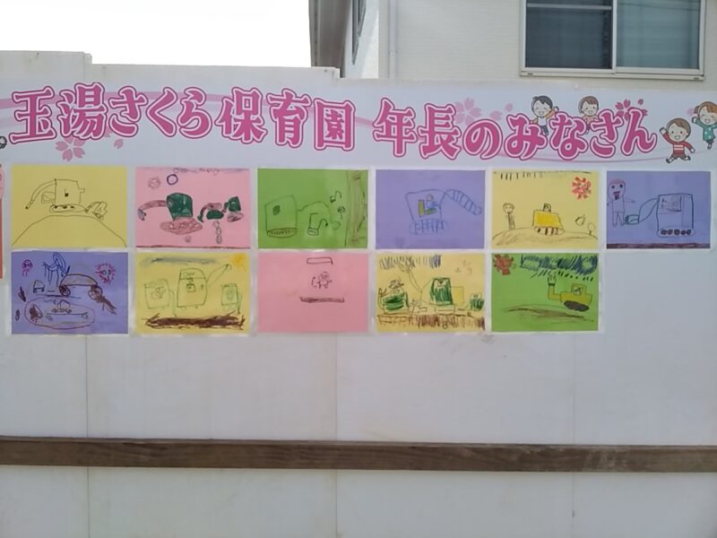 玉湯さくら保育園のみなさんが現場見学会の絵を描いてくれました